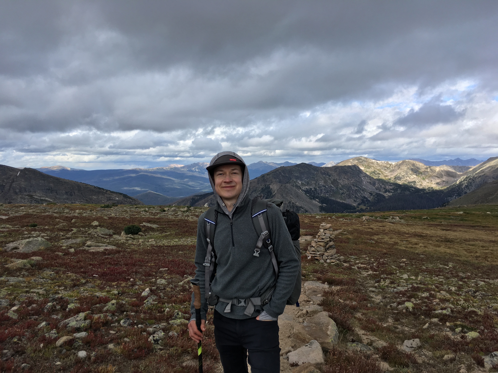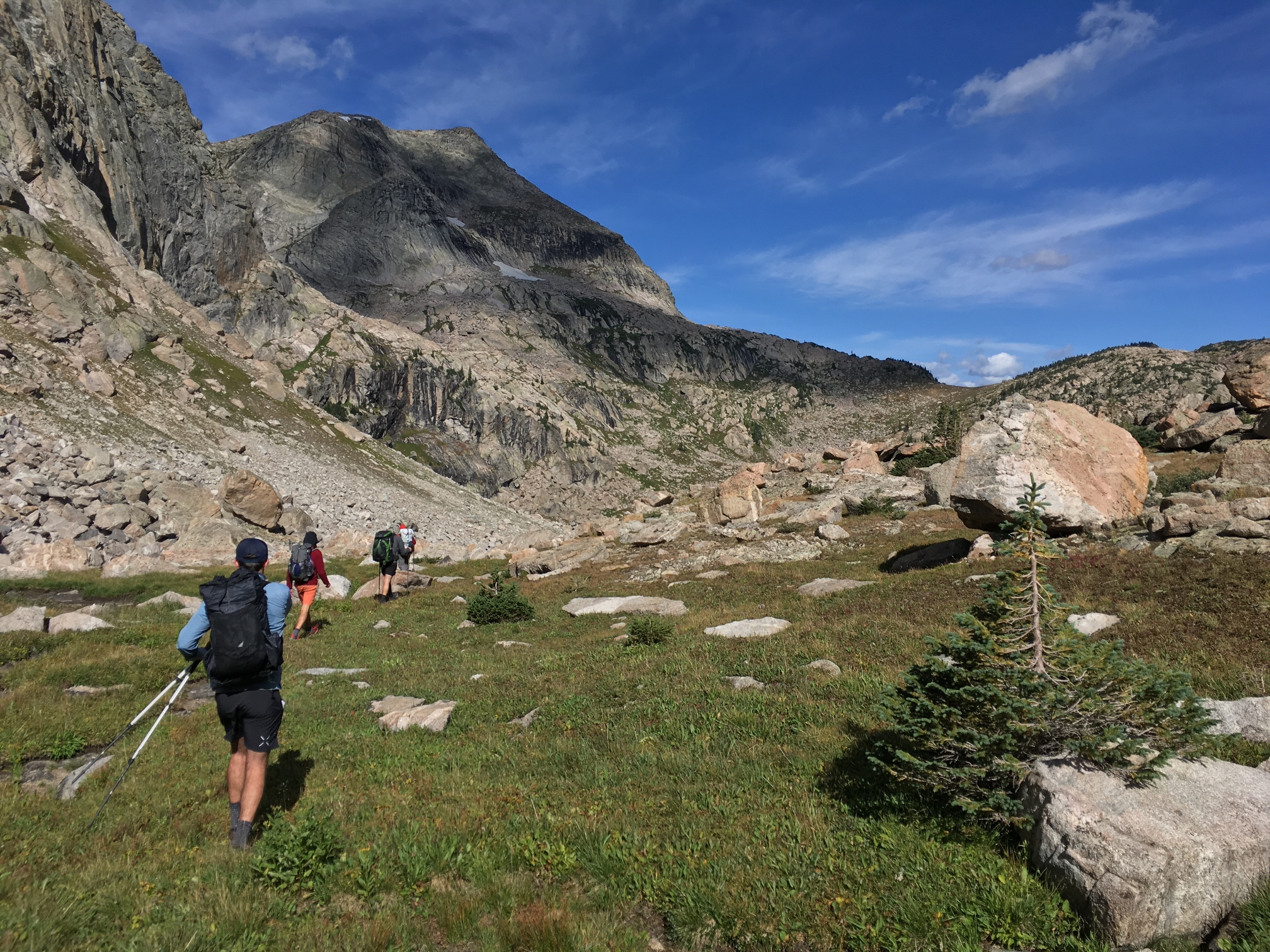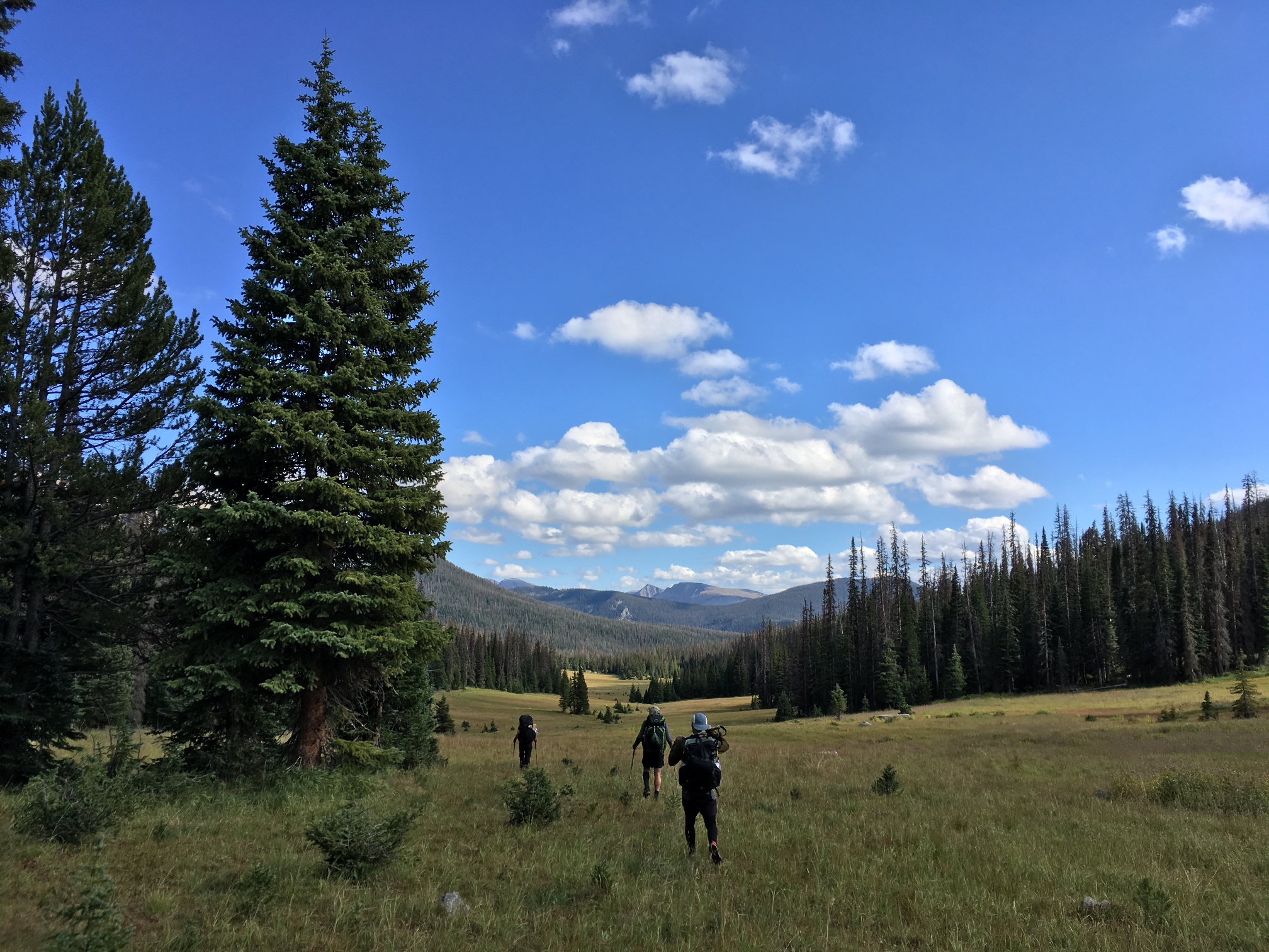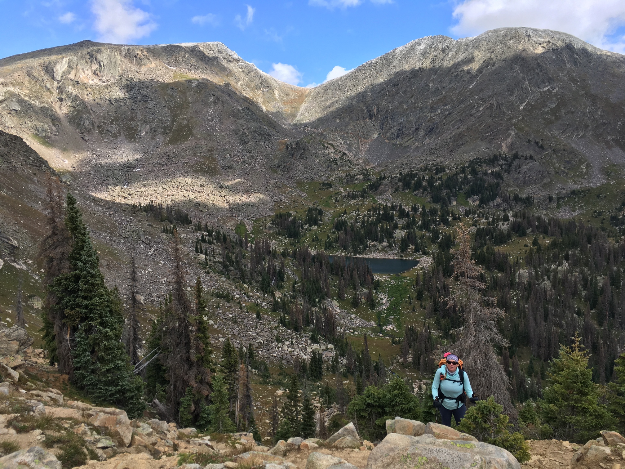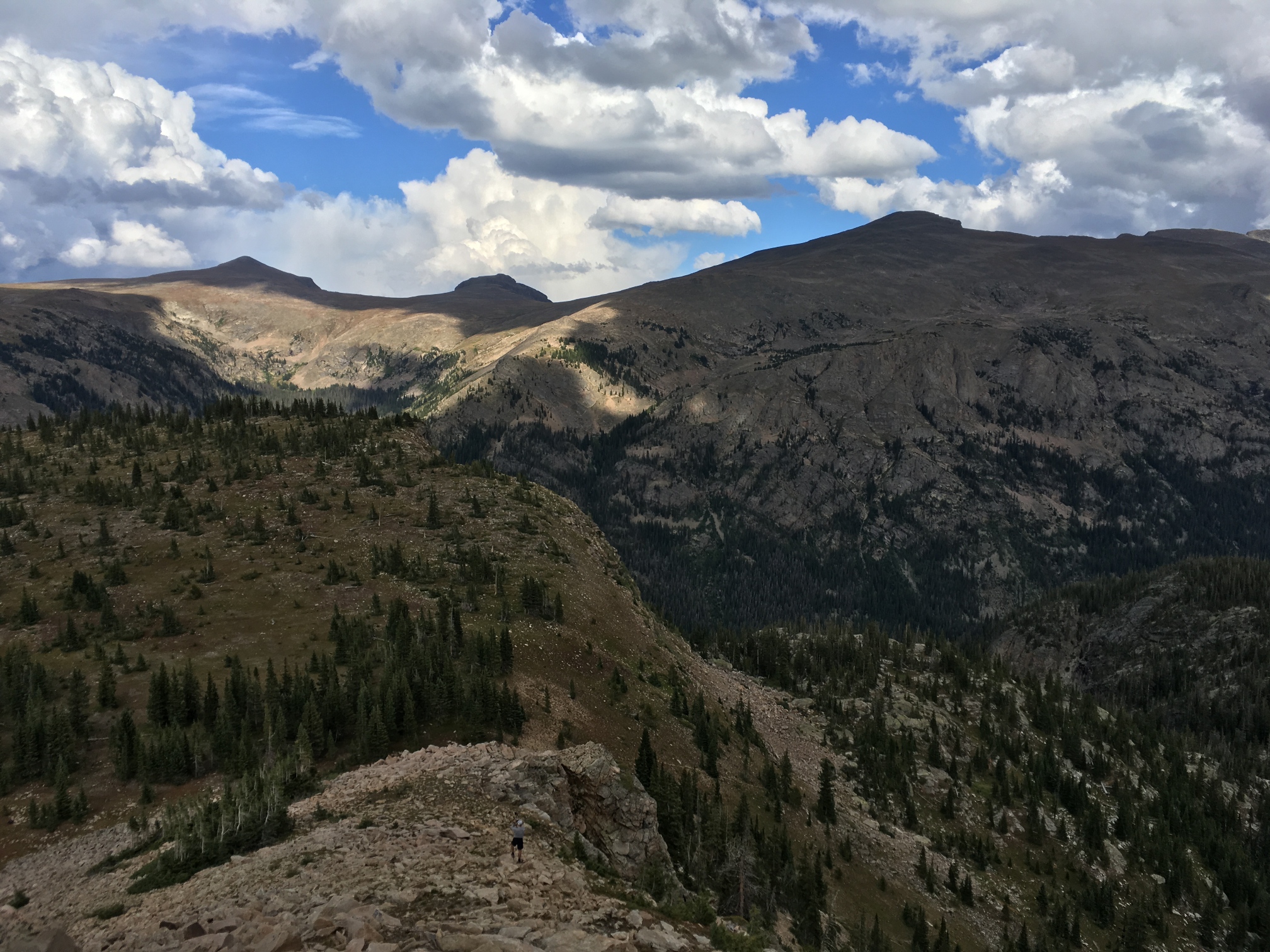 Day 3: We get an alpine start in the morning meaning we wake up very early to start walking because the weather is supposed to really suck. The forecast is for thunderstorms by early afternoon and we have to walk across the divide before that happens. By 8am clouds are already building. We're hoping to be able to walk up to Taylor Peak along the way, but it's a weather dependent situation. By the time we get to the decision point it looks terrible. I've spent a total of 6 years living in Colorado, so I know how quickly the weather can turn here. Perhaps to instill a little fear in the folks who haven't had direct experience with Colorado weather, Alan tells the group that he'll go up Taylor but only if we're ready to hike down in thunder and lightning with "50 mile an hour winds and 35 degree rain." I can't square the idea of wanting to do something with that potential outcome so I skip the peak after teetering in the middle between both options while each group walks away from me. The group that goes up only gets sleeted on and experiences mere 30 mph wind. In the end I wish I had braved the weather, but Alan wasn't wrong about the potential for it to take a bad turn.