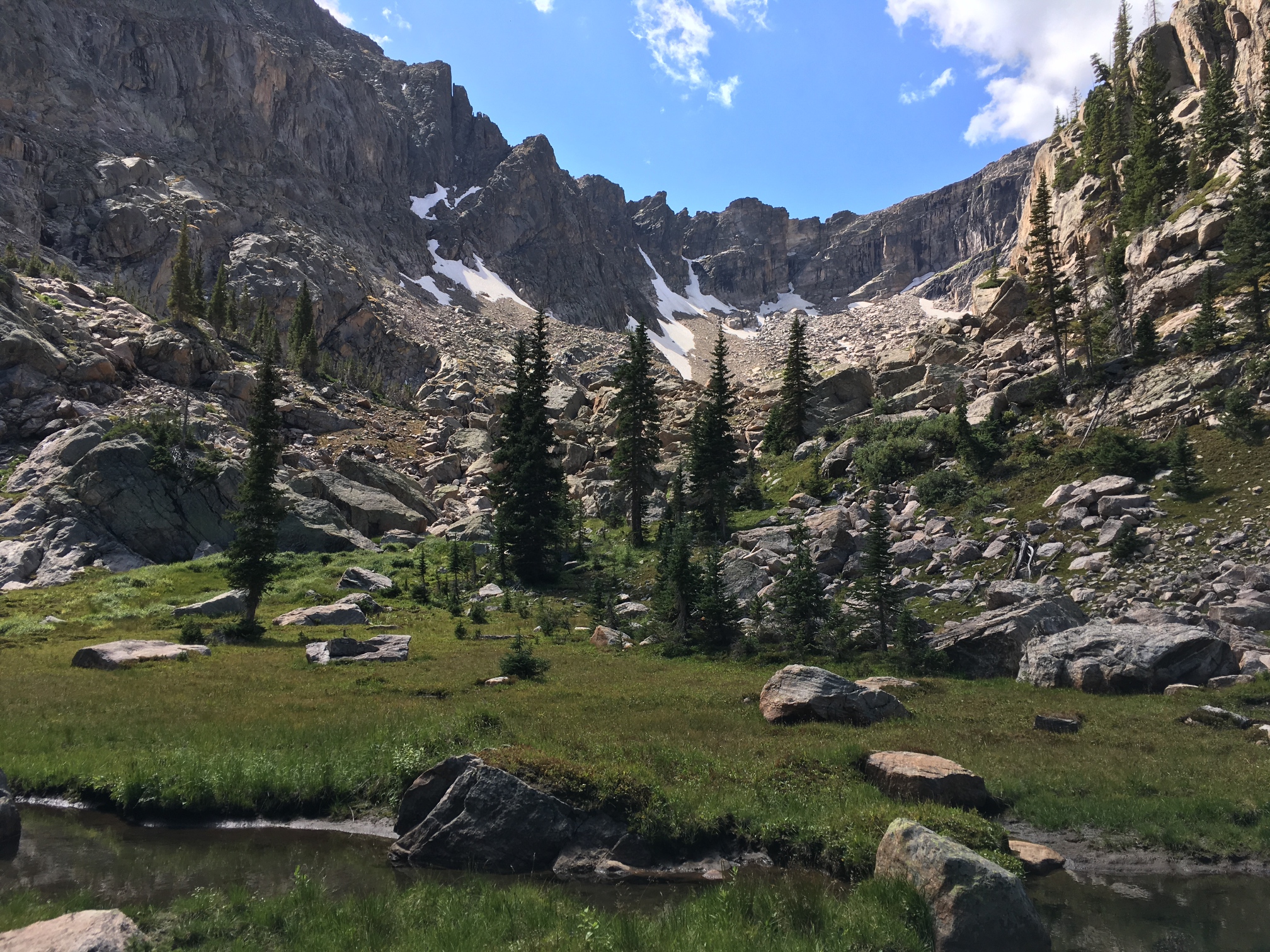 Similar to the Colorado landscape having a different character than the Kings Canyon landscape last year, the experience around this hike had a different character too. Last year was moderately more physical; we did something like 3,800ft of elevation gain a day then. Part of that is that the weather in Colorado doesn't always cooperate which means some plans get nixed. You don't get to do the bonus route when it's supposed to rain the whole second half of the the day. Rocky Mountain National Park also has some pretty strict camping rules which prevent you from just finding a spot on the fly. You have to camp in designated campsites and you have to book them ahead of time.