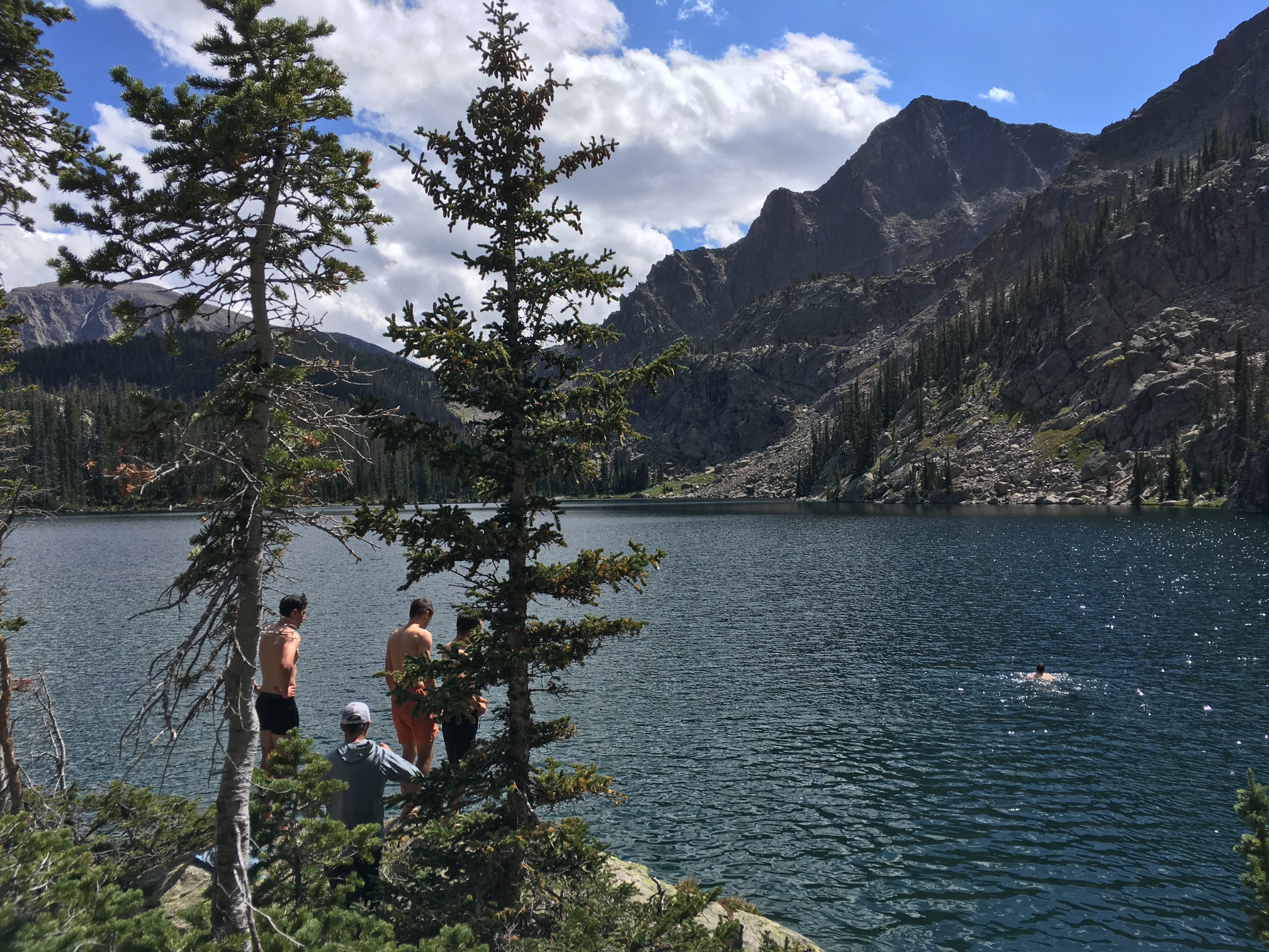 Day 5: The bog wash in the stream the night before has repercussions. It probably gets down to the high 20s overnight. We all have wet shoes and socks and most of us wake up to frozen versions of each. I keep my shoes under my tent vestibule and narrowly avoid the ice shoe fate. David, who cowboy camped, takes probably 15 minutes to squeeze his feet into his frozen and un-untieable shoes. Now we just have a 7 or so mile hike into Grand Lake where we decide we'll walk straight into a breakfast joint for food. We get to town and I order an egg & cheese burrito with a side stack of chocolate chip pancackes. Then there's 1 more mile to walk back to our cars and the trailhead. Back at East Inlet we find Andrew and Justin plus the other group who set out at the same time as us hanging out. We all make our way back into town for lunch and eventually say our goodbyes. I opt to drive back to the Front Range via Trail Ridge Road rather than I-70, so I get to see some of the terrain we walked through one last time.